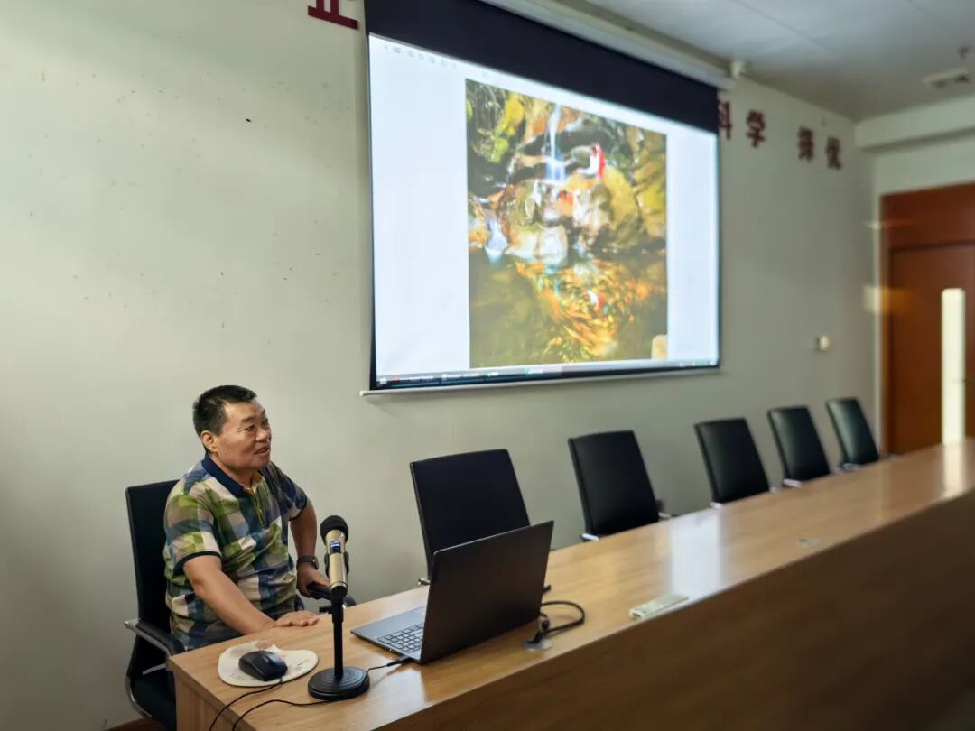 刘宝山老师介绍了近期多次带队进入罗浮山开展摄影创作的有关情况,在展示禅意摄影作品的同时,讲解了如何在摄影作品中巧妙融入禅意元素。