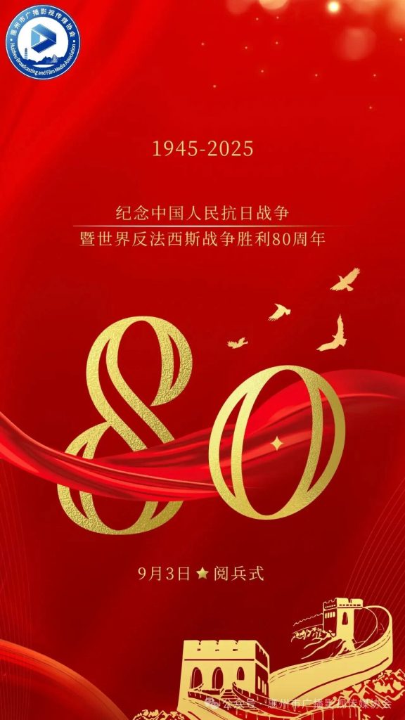 纪念中国人民抗日战争暨世界反法西斯战争胜利80周年 惠州市广播影视传媒协会 · 浏览 9 ·点赞 0 ·收藏 0 ·评论 0 ·2025-09-03 · 海报 0人收藏 0人点赞 上一篇 2025 立秋 下一篇 2025“巅峰杯”禅意罗浮摄影艺术展征稿启事(2025年9月6日修订) 精选文章 2026 元宵 2026 新春快乐 2026 除夕